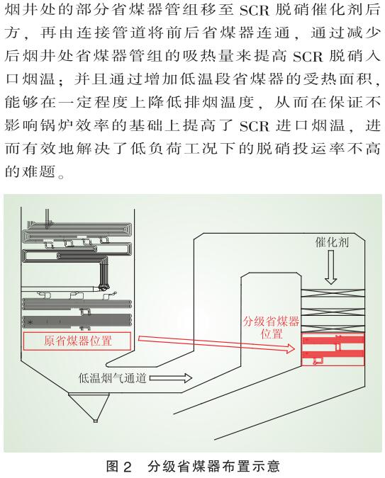 對通過分級省煤器改造來提高超 臨界鍋爐低負荷工況下脫硝系統(tǒng)投運率的改造案例進行了研究。通過持續(xù)2個月的運行監(jiān)控表明,運用分級省煤器改造來保證低負荷工況下NOx的持續(xù)超低排放、 脫硝系統(tǒng)的穩(wěn)定投運方案切實可行,且鍋爐排煙溫度進一步降低,為目前國內(nèi)眾多采用SCR工藝進行煙氣脫硝的電廠升級改造提供了可靠的參考依據(jù)。